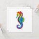 Arco de arcoiris, caballito de mar poligonal sobre fondo blanco. Tatuaje brillante.