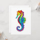 Arco de arcoiris, caballito de mar poligonal sobre fondo blanco. Tatuaje brillante.