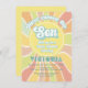 ¡Aquí viene el nuevo hijo! Invitaciones para una ducha de bebé de Hippie Boho para un niño. Cuenta con un gran sol amarillo con rayos para colores pastel y fuentes de groovía personalizado. Para realizar más cambios, vaya a Personalizar esta plantilla. En la parte inferior verás "¿Quieres personalizar este diseño aún más? Haga clic en la herramienta EDIT using Design.