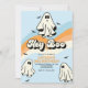 Invitación Hippie Halloween Retro Ghost Hey Boo azul