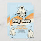 ¡Espeluznantes vibraciones! Invitación a la fiesta de cumpleaños Ghost Halloween de retro groovy en azul y naranja. Spooktacular cumpleaños bash con fantasmas retro y murciélagos.