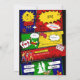 Celebra tu soltero o fiesta de soltera con estilo con este divertido libro de historietas estético. La invitación es colorida y cuenta una historia de historietas retro con burbujas de habla. Muestra una historia con anillos, fiesta, las vegas, cartas, juegos de azar, tiempo de fiesta, todo se queda en Las Vegas y una silueta de pareja boda. Personalízalo con tus detalles, tu monograma para tu extraordinaria celebración personalizado.