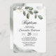 Una invitación al aire libre de eucalipto es una invitación bellamente diseñada que es perfecta para cualquier evento o reunión al aire libre. La invitación generalmente presenta un diseño elegante y rústico, con hojas de eucalipto verdes y exuberantes como el punto focal principal. Las hojas a menudo sirven como un borde natural o marco para el texto y los gráficos de la invitación, creando una apariencia sofisticada e invitante.