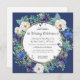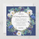 Las elegantes flores acuáticas pintadas a mano y el follaje de hojas crean un marco floral fresco y moderno. Los cachorros azules, las flores silvestres blancas y azul acuático también aportan un toque de color. Copyright, Audrey Jeanne Roberts.