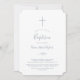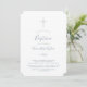 Esta mínima invitación al bautismo azul polvoriento de hoja es perfecta para un elegante bautismo de bebé. El diseño presenta una sencilla silueta verde de pizarra clara azul con un estilo minimalista clásico.