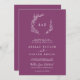 Este fin de semana mínimo de bayas de hojas es ideal para un boda boho. El diseño presenta una sencilla silueta de hojas de vegetación en un romántico color violeta estival con un minimalista estilo bohemio-jardín. Guarde el papel incluyendo el programa de eventos del fin de semana en la parte posterior de la invitación de boda en lugar de en una tarjeta separada. Incluya un código QR para que sus huéspedes puedan consultar su sitio web boda o RSVP fácilmente en línea.