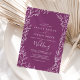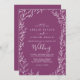 Esta mínima tarjeta de invitación a la boda púrpura de hojas de bayas es perfecta para un boda boho. El diseño presenta una sencilla silueta de hojas de vegetación en un romántico color violeta estival con un minimalista estilo bohemio-jardín.