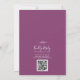 Esta invitación mínima para una boda con código QR en un monograma de baya hoja es perfecta para un boda boho. El diseño presenta una sencilla silueta de hojas de vegetación en un romántico color violeta estival con un minimalista estilo bohemio-jardín. Guarde el papel incluyendo un código QR para que su invitado vea detalles, RSVP o ambos.