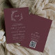 Esta invitación de boda mínima para un boda boho en un monograma QR es perfecta para un boho. El diseño bohemio presenta una sencilla silueta verde de color rojo oscuro con un estilo boho minimalista clásico. Guarde el papel incluyendo un código QR para que su invitado vea detalles, RSVP o ambos.