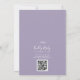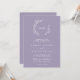 Esta invitación de boda mínima en el monograma de lavanda hoja QR es perfecta para un boda boho. El diseño presenta una sencilla silueta de hojas de vegetación en tonos púrpura lila pastel con un estilo minimalista bohemio-jardín. Guarde el papel incluyendo un código QR para que su invitado vea detalles, RSVP o ambos.