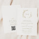 Invitación Hoja mínima | Boda de código QR de monograma dorad
