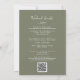 Esta mínima invitación de bodas para eventos de fin de semana de color verde oscuro es perfecta para un boda boho. El diseño presenta una sencilla silueta de hojas de verdor en verde oscuro con un estilo de boho de montaña minimalista. Guarde el papel incluyendo el programa de eventos del fin de semana en la parte posterior de la invitación de boda en lugar de en una tarjeta separada. Incluya un código QR para que sus huéspedes puedan consultar su sitio web boda o RSVP fácilmente en línea.