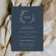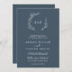 Invitación Hoja mínima | Boda de monograma formal azul pizarr