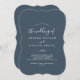 Esta invitación a la boda mínima en forma de monograma azul hoja es perfecta para una boda elegante. El diseño presenta una sencilla silueta de vegetación, de un azul oscuro y un estilo minimalista clásico. Personaliza la parte de atrás con las primeras iniciales de la novia y el novio.