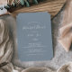 Esta mínima invitación a la cena de un ensayo en blanco y azul hoja es perfecta para un elegante ensayo de boda. El diseño presenta una sencilla silueta de vegetación blanca sobre un polvoriento fondo azul con un estilo minimalista clásico.