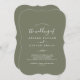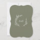 Esta mínima invitación al matrimonio en forma de monograma negro verde oscuro es perfecta para un boda boho. El diseño presenta una sencilla silueta de hojas de vegetación en verde oliva con un estilo bohemio minimalista de montaña. Personaliza la parte de atrás con las primeras iniciales de la novia y el novio.