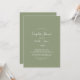 Esta invitación a la ducha mínima para parejas de color verde hoja es perfecta para una ducha boho. El diseño presenta una sencilla silueta de hojas de vegetación en un color verde polvoriento con un estilo de boho de montaña minimalista.