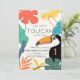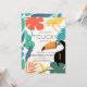 Esta tierna invitación a la fiesta de primer cumpleaños "esperamos que turen una unión" presenta un fondo blanco con unas hojas tropicales toscanas y coloridas. El reverso presenta un fondo blanco con motivos de hojas verdes. Personalice sus necesidades. Puedes encontrar más productos a juego en mi tienda.