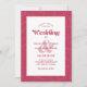 El diseño del boda del patrón de hojas abstractas de color rojo magenta presenta un patrón de hojas abstractas moderno en un fondo rojo magenta de moda. La caligrafía y el guión audaces están en magenta sobre un fondo blanco y presentan los nombres de la pareja artísticamente posicionados sobre un ancho y ancho mando. Una plantilla de moda complementa el diseño único de caligrafía. El Invitation Suites ofrece este diseño exclusivo. La parte posterior de la tarjeta repite el patrón de la hoja. Asegúrese de ver el vínculo de colección en esta página para ver todos los elementos coincidentes. Por favor, dirija preguntas o solicitudes de personalizados a invitationsuites@gmail.com.