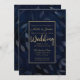 Invitación Hojas Botánicas Azul Oscuro Boda Moderna Chic