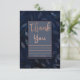 Invitación Hojas Botánicas Azul Oscuro Modernas Gracias Rosa