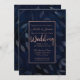 Invitación Hojas botánicas azules oscuras Boda rosa moderno