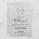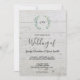 Elegante invitación a bodas botánicas de acuarela monogramada para la primavera, el verano, el otoño o la boda de invierno. Diseño de la acuarela de eucalipto verde en la tarjeta de madera de granero. Puede cambiar fácilmente el texto.