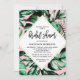 Bridal Shower Palm deja invitaciones - decorado con hojas de palma en un fondo rosa.
