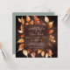 Este otoño deja una invitación rústica a la boda cuadrada de madera marrón es perfecta para un boda de octubre. El diseño rústico del campo presenta unas impresionantes hojas de acuarela pintadas a mano en otoño, en tonos amarillos, naranjas quemados y rojo burdeos, que aparecen en un falso fondo de madera.