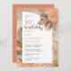 Brillante acuarela seca terracota hidrangeas y hojas de palma floral "Fiesta de cumpleaños número 50" diseño de cumpleaños de la mujer. Diseño compuesto por Holiday Hearts Designs (derechos reservados).