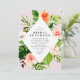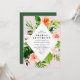 flores de acuarela pintadas a mano y hojas de palma, tema tropical de la comida nupcial. El texto y los colores se pueden editar.
