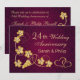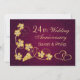 Hojas de parra doradas y corazones unidos sobre un fondo de damasco púrpura para invitación de fiesta de 24 aniversario de bodas (cualquier año)