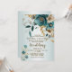 Invitación Hojas doradas de flores blancas turquesa del parti
