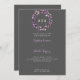 Invitación Hojas moradas Boda gris oscuro monogramado Wreath