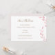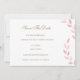 Un diseño botánico dulce con follaje rosa pálido y escritura elegante en dorado sobre un fondo blanco puro en la parte delantera y fondo rosa claro en la parte trasera.