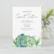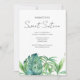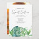 Fijar el tono para una elegante celebración tropical con esta elegante invitación Sweet 16, perfecta para ideas de fiesta de cumpleaños de adolescentes como un fiesta tropical de piscina luau o un fiesta de playa luau tiki. Con una tipografía de moda que dice "Sweet Sixteen" (Dieciséis Dulces) y hojas de monastera de palmeras de color agua originales en exuberantes tonos verdes, este diseño capta la combinación perfecta de estilo insular y sofisticación. Ya sea que esté planeando una reunión al aire libre en casa o un bash tropical lleno, esta invitación se adapta a una variedad de eventos temáticos de 16 años. El blanco inmaculado, con un texto de carbón vegetal y un lado opuesto de color turquesa de cristal de mar, le confieren un aspecto moderno y pulido que impresionará. Explore más ideas de cumpleaños para adolescentes y fiestas de Sweet 16 en www.zazzle.com/dotellabelle. Pintura original de Victoria Grigaliunas de Do Tell A Belle.