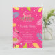 Estas invitaciones incluyen flamencos rosados y hojas tropicales sobre fondo rosado. Esta invitación se personaliza fácilmente para su evento simplemente añadiendo sus detalles.