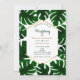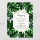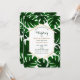 Invitación Hojas Tropicales Verde Oscuro Boda Blanca y Dorada