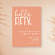 Celebra el hito de cumplir cincuenta años con esta moderna y elegante invitación a cumplir los 50 años. El cálido fondo de melocotón complementa perfectamente el texto de marfil y los pequeños detalles del corazón, añadiendo un toque de romanticismo al diseño. El divertido y coqueto texto transmite una sensación de emoción por la próxima celebración. Esta invitación contemporánea y minimalista tiene un estilo boho que es perfecto para una fiesta de cumpleaños. Disponible como una cómoda descarga digital, esta invitación es imprescindible para cualquier persona que desee añadir un toque de encanto a su día especial.