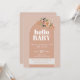 Inspirada en el diseño minimalista y de mediados de siglo, esta invitación le dará un sentido de moda a su evento. Ideal para una ducha de bebé, un brunch o un té de alta calidad, puedes personalizar la descripción para tu evento. Titular: "Hola, bebé". Tonos rosados y beige turbios y un acento floral.