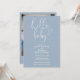 Esta invitación para baby shower de elegante letra en azul dusty puede ser personalizada con toda la información de su celebración especial y una foto especial en el reverso. Diseñado por Thisisnotme©