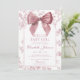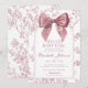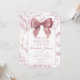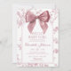 Esta bonita invitación de baby shower presenta un elegante lazo rosa y tipografía elegante con un fondo floral y se puede personalizar con los detalles de tu shower, código QR del registro e información en el reverso. Diseñado por Thisisnotme©