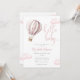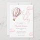 Esta encantadora invitación de baby shower presenta un lindo globo aerostático rosa y nubes, junto con tipografía de letra elegante. Diseñado por Thisisnotme©