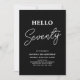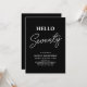 Invite a tus invitados con esta elegante invitación de cumpleaños número 70. Este diseño presenta un moderno "Hola Setenta" en tema de color negro y blanco. Puedes personalizar todo el texto. Los suministros de fiesta coincidentes están disponibles en mi tienda BaraBomDesign.