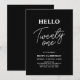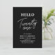 Invite a tus invitados con esta elegante invitación de cumpleaños número 21. Este diseño presenta un moderno "Hola Veintiuno" con tema de color negro y blanco. Puedes personalizar todo el texto. Los suministros para la fiesta a juego están disponibles en mi tienda BaraBomDesign.
