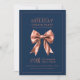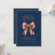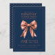 Invitación Holiday Dinner Party Rose Gold Satin Bow Navy Blue