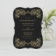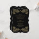 Invite a sus huéspedes con estilo y con una elegante invitación para fiestas. Esta elegante invitación vacacional cuenta con flores de oro ornamentadas con un esquema de color negro y dorado de moda. Para una personalización más avanzada de este diseño, como cambiar el color de fondo, estilos de fuente, etc, simplemente seleccione el botón "Personalizar It" de arriba.