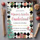 Este exclusivo tablero de ajedrez blanco y negro con tema Nutcracker es perfecto para su fiesta de invierno en el continente. ¡El primer cumpleaños de tu bebé es un evento memorable que necesita ser tan memorable como una invitación! Un marco de tablero de ajedrez rodea un texto moderno y festivo que se complementa con tus temas favoritos de Nutcracker! Una colección festiva de acuarelas de árboles navideños, ornamentos, medias, petardos, regalos de Navidad y el rey del ratón ayudan a crear una invitación festiva y divertida, perfecta para tu cumpleaños de invierno.