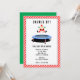 Creative Christmas holiday open house invites featuring funny Santa Claus jumping on a trampoline for friends, family, neighbors and clients.
