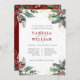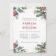 Elegante invitación a la cena con un ensayo botánico acuático con el ensayo de la ceremonia boda y detalles de la celebración de la cena con líneas insignificantes y hojas delineadas doradas, bayas rojas, mistletoe verde, agujas de pino, masa de pino y otras follajes de invierno en una paleta festiva de Navidades de acuarela. Tarjeta inversa en un elegante navidad rojo Una hermosa elección para Navidades elegantes o bodas de invierno. Este artículo es parte de una colección de navidades de invierno de Holly Berries y por favor visite nuestra tienda. Compra nuestra tienda en línea para más piezas en este diseño o escribe y envía un correo electrónico a citronelladesign@gmail.com para que el personalizado lo solicite.